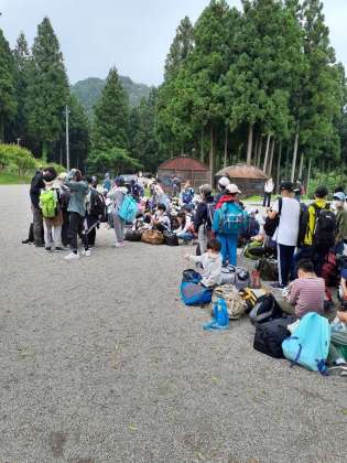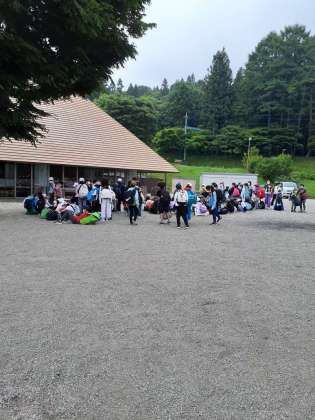 川場村のなかのヴィレッジに到着しました。班長たちが報告をしています。みんな元気です。