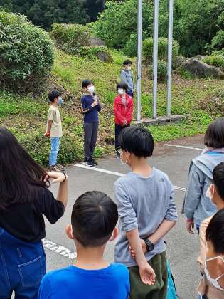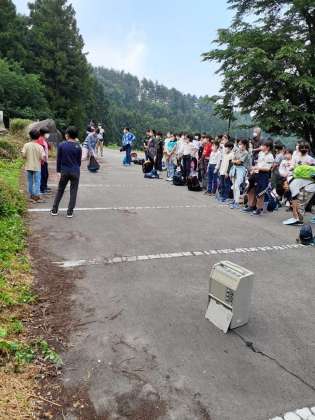 お世話になった、なかのヴィレッジにお別れです。閉室式を行って、村めぐりに出発します。
