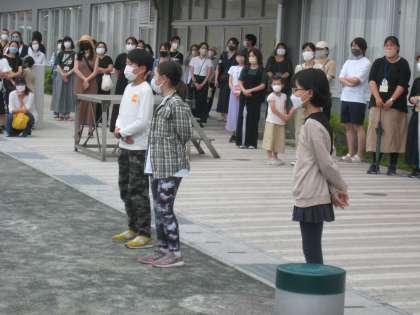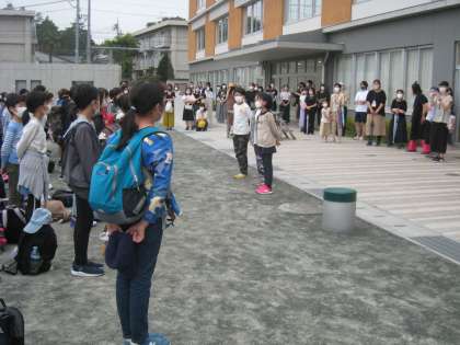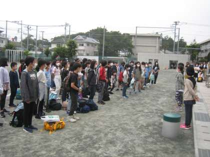 6月22日、5年生が川場村から無事に戻りました。子どもたちは、バスを降りて重い荷物を抱えながら学校へ到着しました。帰校式は小雨が降る中、児童による司会で「校長先生の話」「代表児童の言葉」「引率の先生方へのお礼」などの内容で行いました。校長先生からは、子どもたちの行動が素晴らしかったとのお褒めの言葉をいただきました。保護者の皆様、家にに着いたら土産話をたっぷり聞いてください。充実した1泊2日の行事となりました。