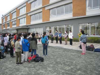 月22日、5年生が川場村から無事に戻りました。子どもたちは、バスを降りて重い荷物を抱えながら学校へ到着しました。帰校式は小雨が降る中、児童による司会で「校長先生の話」「代表児童の言葉」「引率の先生方へのお礼」などの内容で行いました。校長先生からは、子どもたちの行動が素晴らしかったとのお褒めの言葉をいただきました。保護者の皆様、家にに着いたら土産話をたっぷり聞いてください。充実した1泊2日の行事となりました。