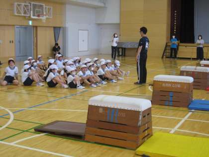 6月24日、第2回校内研究会を行いました。本日は校内研究主題「運動の楽しさや喜びを知り、自らの課題解決に取り組む児童の育成〜自ら考え、工夫する体育学習〜」を踏まえて3年2組対象に単元『器械運動「跳び箱運動」』の体育授業を実施しました。授業後は専任講師である大学教授の先生に指導を受けながら研究協議会で体育授業についての研究を深めました。
