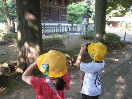 7月1日、今年度初めて探鳥会を豪徳寺で実施するkとが出来ました。早朝でしたが、楽しみに参加した子どもたちは21名いました。子どもたちは、野鳥ボランティアの方の説明をよく聞き、野鳥のさえずりに耳を傾け、持参した双眼鏡で木立を見上げました。残念ながらアオバズクの姿を見つけることはできませんでしたが、早朝の豪徳寺で有意義な時間を過ごすことができました。