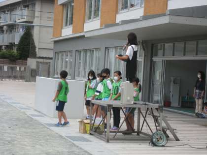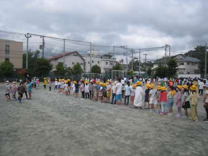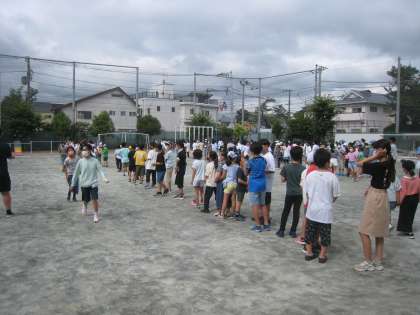 7月7日、朝の活動時間に児童集会を行いました。内容は「6人の集会委員の前に並び、ジャンケンをして勝ったらカードをもらう」というものです。集会委員が司会進行を務め、子どもたちは楽しみながら参加していました。
