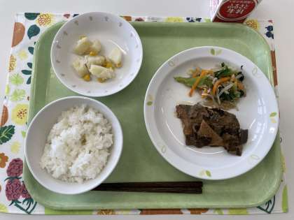 献立 ごはん 鯖の味噌煮 和風ナムル コーンポテト 牛乳