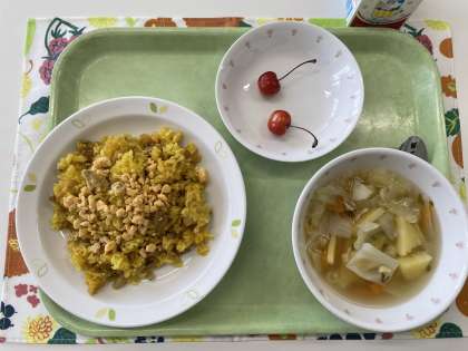 献立 カレーピラフ ABCスープ さくらんぼ 牛乳