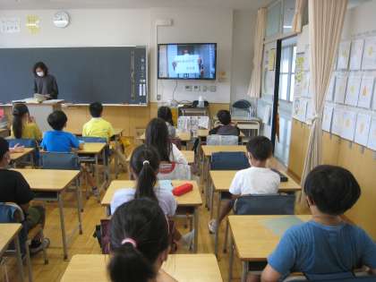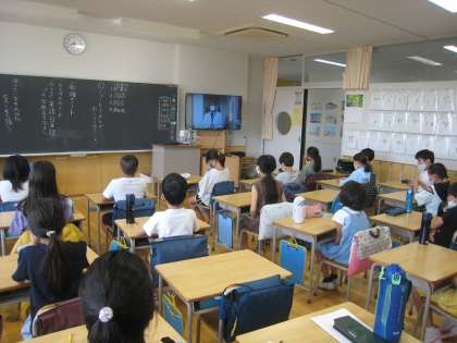 7月20日、1学期の終業式を校内テレビ放送で行いました。校長先生からは「1学期の自分を振り返り、今後に向けた目標を作りましょう。」というお話がありました。児童の言葉では5年生代表児童が、1学期に頑張って成果をあげたことについての発表があり子どもたちは各教室でしっかり話を聞きました。校歌は音源に合わせて心の中で歌いました。終業式後には生活指導主任から夏休みを安全・健康に過ごすための注意喚起がありました。