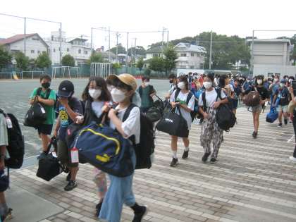 8月4日から6年生は日光林間学園へ行ってきます。「いつでもチャレンジ、どこでもスマイル、だれとでもハーモニー」のスローガンを掲げ、2泊3日の共同生活を送ります。出発式では、校長先生の話・児童代表の言葉・引率の先生方の紹介などがありました。子どもたちは大きな荷物を持って、元気に出発しました。