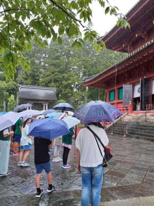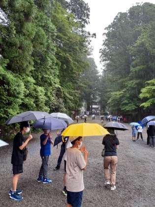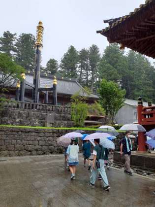ガイドの方の説明を聞きながら歴史にふれています。雨の東照宮も趣が感じられます。