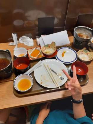 待ちに待った夕食の時間になりました。「すごく美味しそう」「見たらお腹がすいてきた!」子どもたちの声です。それを聞いた宿舎の方は、とても嬉しそうなお顔でした。まさに、ハーモニーが奏でられました。