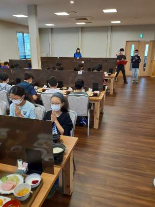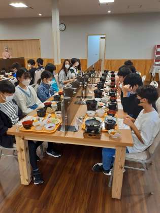 「お腹がすいて、待ちきれない。」と予定時間よりも早く集まりました。しっかり食べてハイキングの準備をします。みんな元気です。
