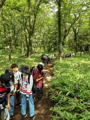 湯滝を見学して、いよいよ小田代が原に出発です。みんな元気です。