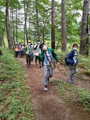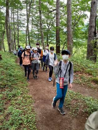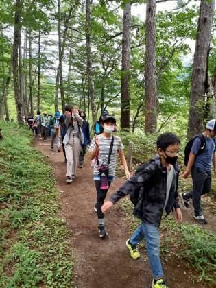 小田代が原の草原のなかを歩き、また、森の中に入りました。みんな元気です。