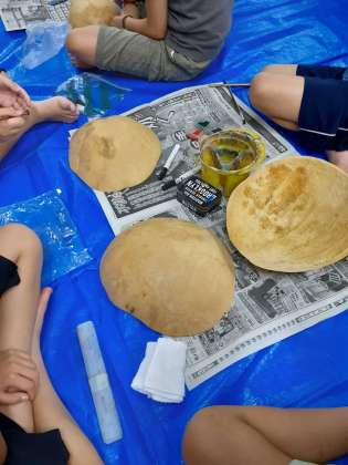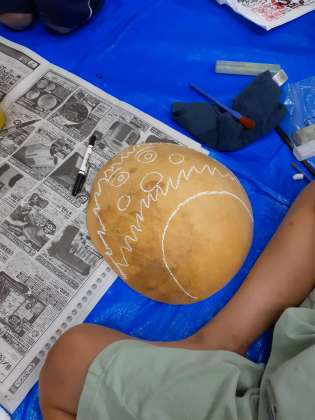今日の夜のアクティビティは、日光の伝統にふれて思い出をつくろうです。ゆうがおの殻を使った「ふくぺ」づくりです。様々な形の殻に思い思いの顔を描いていきます。