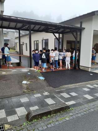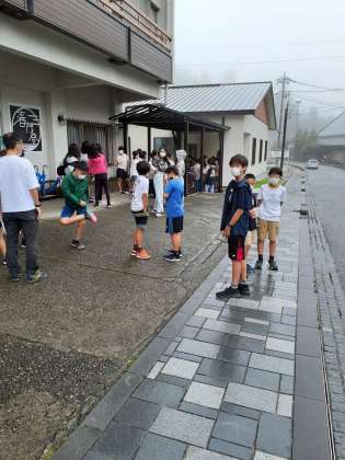 二泊三日の林間学園も最終日です。宿のとなりにある食堂で最後の朝食です。みんな、お腹ペコペコです。