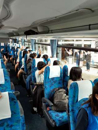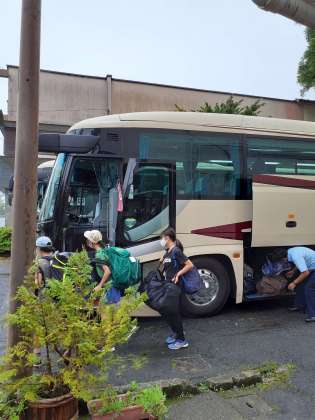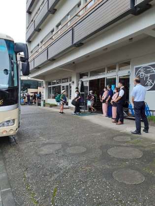 お世話になった宿に別れを告げ、出発です。みんな元気です。