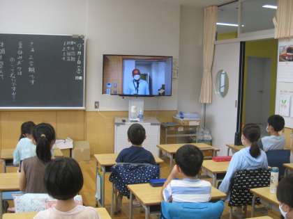 9月1日、2学期の始業式を校内テレビ放送で行い、校長先生からは2学期に向けて「自分のよさをみんなの中で生かし、協力・協働していくことが大切です。」という話がありました。児童の言葉では4年生代表児童が、2学期に向けての抱負をしっかり発表できました。始業式後は生活指導主任から学び舎4校で確認した「学習用タブレット型情報端末(iPad)の使い方」についての説明がありました。