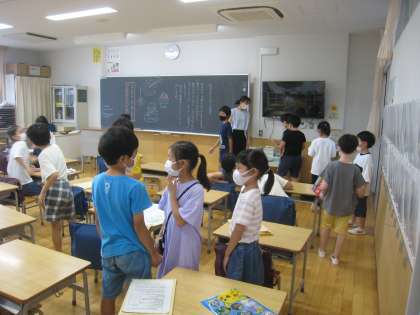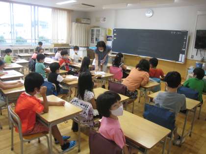 2学期が始まり、各教室では子どもたちが取り組んできた夏休みの宿題などの提出や担任の先生からの話がありました。久しぶりの登校ですが、子どもたちは元気な様子です。