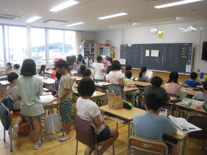 2学期が始まり、各教室では子どもたちが取り組んできた夏休みの宿題などの提出や担任の先生からの話がありました。久しぶりの登校ですが、子どもたちは元気な様子です。