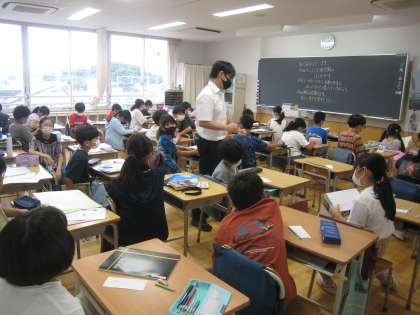 2学期が始まり、各教室では子どもたちが取り組んできた夏休みの宿題などの提出や担任の先生からの話がありました。久しぶりの登校ですが、子どもたちは元気な様子です。