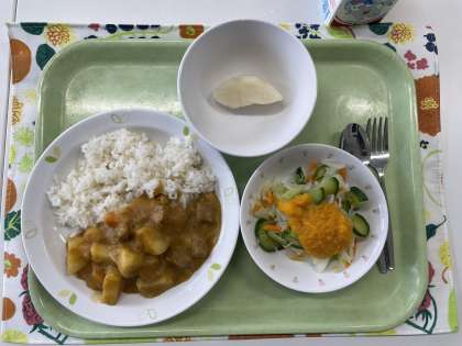 献立 カレーライス にんじんサラダ 梨 牛乳