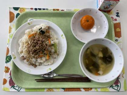 献立 ビビンバ わかめスープ 冷凍みかん 牛乳
