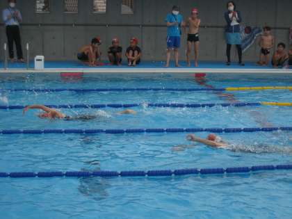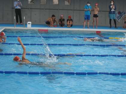 9月8日、5・6年生による校内水泳記録会を3年ぶりに実施しました。競技種目は、自由形(50m、25m)、平泳ぎ(50m、25m)、男女別リレー(25m×8人)。肌寒い天候でしたが、子どもたちは各々の参加競技に精一杯取り組みました。