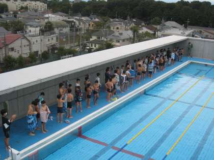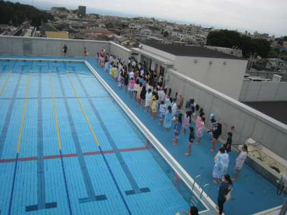 9月8日、5・6年生による校内水泳記録会を3年ぶりに実施しました。閉会式では、成績発表、6年代表児童によるおわりの言葉、校長先生の話がありました。今年度の水泳指導が無事に終わったことに感謝して最後に子どもたちがプールへ向かって挨拶しました。