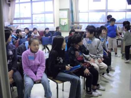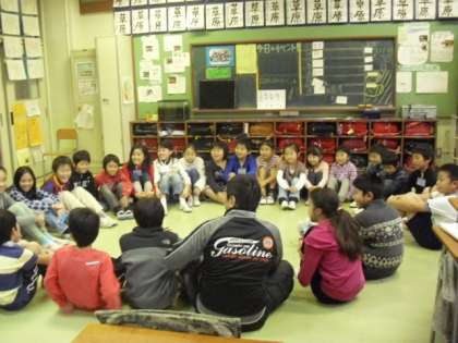 いつもは校庭で元気に体を動かしますが、本日は雨天のため教室の中でそれぞれゲームをしました。ハンカチ落としやいす取りゲームなど、学年を越えた交流でみんな楽しんでいました。