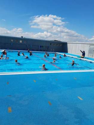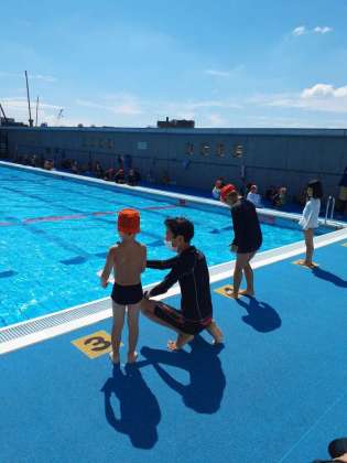 一年生のブール納めを行いました。小学校での初めての水泳指導は、楽しく、自分のめあてに向けて、精一杯にできました。ブールから楽しそうな声が、秋晴れの空に響いていました。