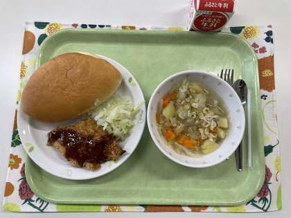 献立 セルフなみのりバーガー ABCスープ 牛乳