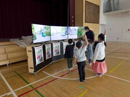映像体験を通じて、楽しく安全な道路の歩き方を学んでいたのが印象的でした。