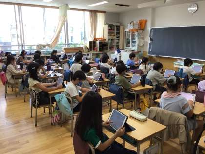 3年生以上では、朝学習の時間などを利用して、デジタルドリル「キュビナ」の活用を進めています。漢字や計算といった基礎的基本的な内容のほか、各単元の終わりには学習内容の復習など、学んだことの定着ができるよう、子供たちも励んでいます。