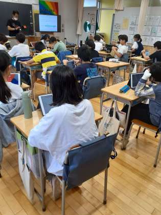 本校では、朝の時間を朝会や集会の他に学習時間として活動しています。短い時間なので漢字や計算の練習やミニテストに取り組みます。中学年以上は、タブレットを使ってドリルなどに取り組むこともあります。