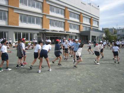 6年生は小学校生活最後のながなわ大会。子供たちは今までの経験を生かして速やかに跳んでいました。