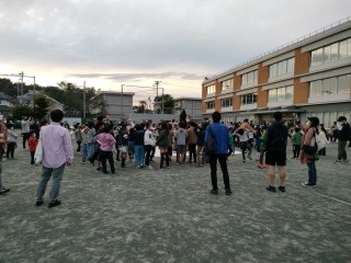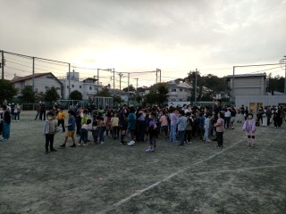 城山ミニキャンプが始まりました。城山小学校おやじの会の皆様に準備・運営をしていただいています。たくさんの子供たちが楽しそうに「城山音頭」「ジェンカ」「マイムマイム」などを踊っています。校長先生をはじめ先生たちも参加しています。