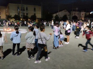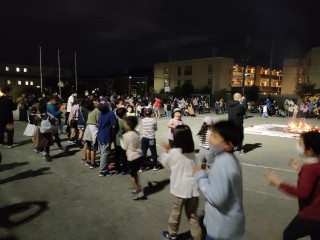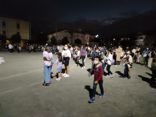 子供たちは何度も踊り汗びっしょり。踊りの締めくくりに城山音頭を踊りました。