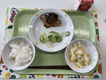 献立 ご飯 さばにみそ煮 ひとしお野菜 コーンポテト 牛乳