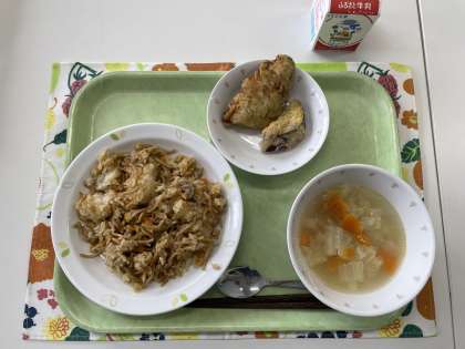献立 そばめし 白菜のスープ フリッター(さつまいも、しいら) 牛乳