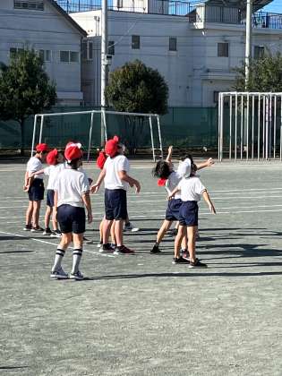 3年生が、体育の授業の前の校庭で、雲一つのない晴天の秋空を見上げていました。何をしているのかと様子をうかがっていると、「1、2、3・・・10!」の声で一斉に空を見上げていました。「見えた。見えた。」子どもたちは、「かげおくり」をしていました。3年生は、国語で「ちいちゃんとかげおくり」という、あまんきみこさんの作品を題材として学習します。ご存知の通り、この作品は、有名な戦争児童文学です。子どもたちは、このような体験を通して、あの日に家族でお父さんを見送ったかげおくりの意味と心情をより深く理解していくのだと思いました。