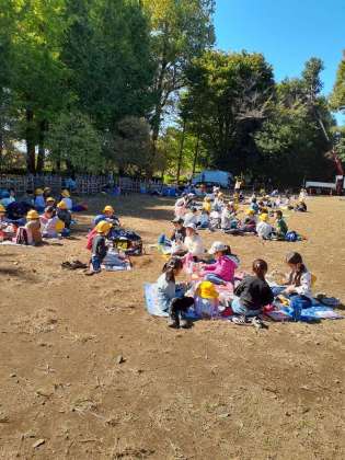 これから、お弁当の時間です。グループごとに準備ができたら、お家の人が用意してくれたお弁当をいただきます。