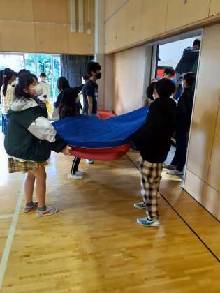 いよいよ各学年の練習が始まります。そのために、6年生が会場の準備を行いました。いつも授業で使っているマットや跳び箱を倉庫に片付けたり、防球ネットをまとめたり、それは、間違いなく最高学年の姿でした。きっと各学年が練習をするたびに、城山小学校のリーダーの姿を感じるに違いありません。