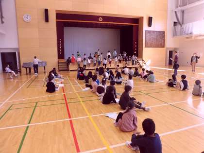 本日より学芸会の練習が本格的に始まりました。どの学年も体育館を使い、学芸会への心構えを話したり、場面ごとの立ち位置、セリフの読みの確認などの練習を行っています。初めて学芸会を行う学年も多く、どの児童もとても熱心に練習に参加しています。今後の成長がとても楽しみです。