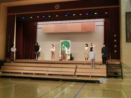 今週から、衣装や小道具、大道具も使いながら練習を始めました。6年生は、合奏も自分たちで演奏します。一日一日、仲間の演技を見る目が真剣になり、よりよい劇を作り上げようとしています。