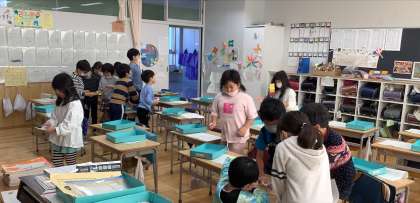 身の回りのものを使っておもちゃを作りました。説明書を作成し、お互いに遊んで楽しみました。