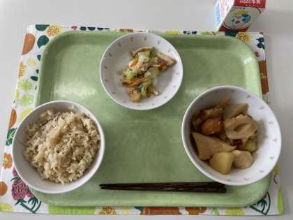 献立 茶飯 おでん(関東) 白菜と油揚げの煮浸し 牛乳