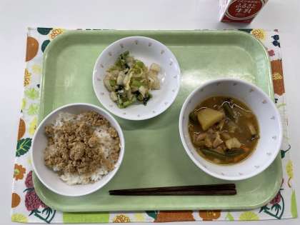 献立 七分付ごはん おからそぼろ じゃが芋の筑前煮 白菜のごまだれサラダ 牛乳