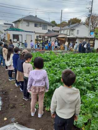 羽根木公園のそばの、畑に着きました。農家の方からのお話を聞いてます。