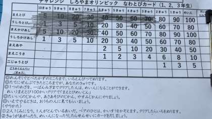 縄跳びカードを使って、いろいろな技へ挑戦中です。