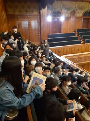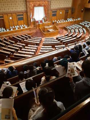 最後の見学先は、国会議事堂でした。会期中のため、さまざまな変更がありましたが、なんとか見学することができました。