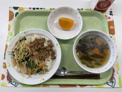 献立 ビビンバ わかめスープ ゆめオレンジ 牛乳
